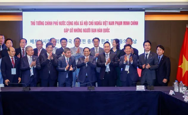 On the first day of his visit, Prime Minister Pham Minh Chinh hosted a meeting titled "An Inspiring Gathering with Korean Friends," inviting the heads of approximately 60 organizations, including Korean NGOs active in Vietnam, the Korea-Vietnam Friendship Association, the Association of Koreans Who Love Vietnam, and coach Park Hang-seo.