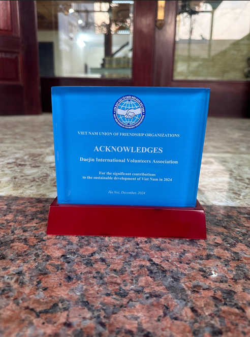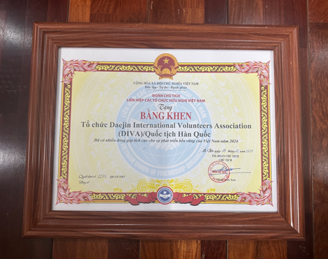 On December 20, 2024, DIVA (Daejin International Volunteers Association) received a Certificate of Merit from the Vietnam Union of Friendship Organizations (VUFO).