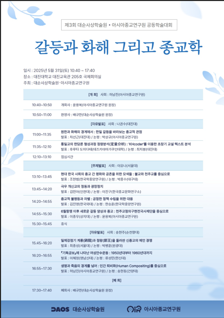 - The Daesoon Academy of Sciences Hosts the 3rd Joint Academic Conference with the Institute of Asian Religious Studies
