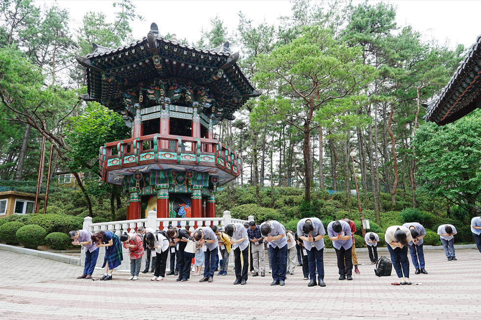 On July 21, 18 scholars from the East Asian Society for the Scientific Study of Religion (EASSSR) visited the Yeoju Headquarters Temple Complex. The group included academics from various institutions worldwide, such as Xiamen University, Soochow University, Tsinghua University, and Wuhan University in China; National Chengchi University in Taiwan; and representatives from the Netherlands, Hong Kong, Singapore, Japan, and Malaysia. During their visit, the scholars toured the temple grounds, viewed the museum exhibits, and held a meeting at the Book Café. Throughout the meeting, the scholars expressed profound interest in the administrative policies and thought of Daesoon Jinrihoe.