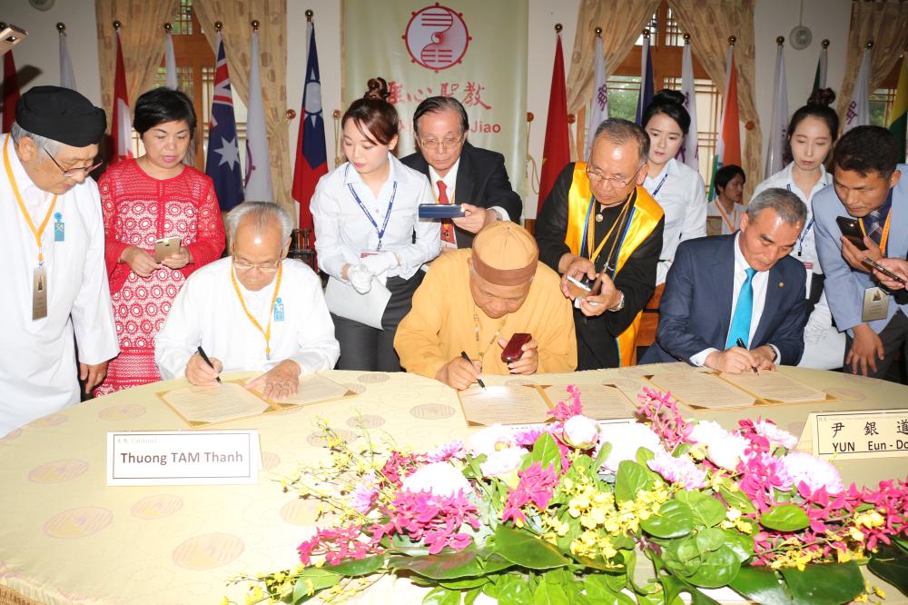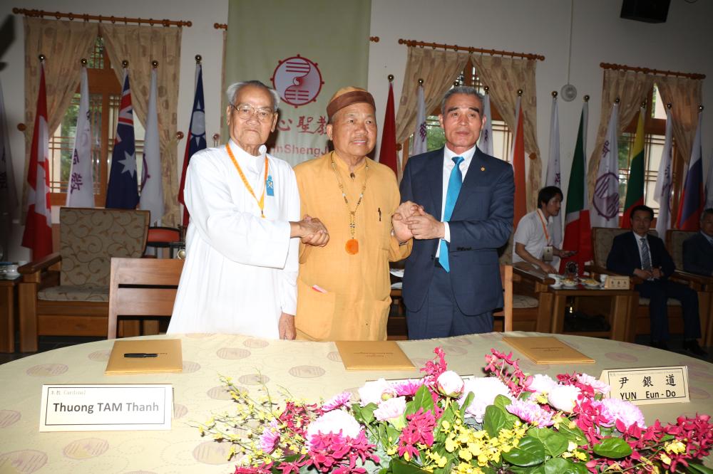 In the unveiling ceremony of Wang Chan Lao Zu, president Yoon Eun Do made a congratulatory address before 5,000 people including the former vice president and other financial and political leaders of Taiwan.The event was followed by the signing ceremony for MOU of the Association of East Asian New Religions. The three religious movements, Daesoon Jinrihoe, Weixin Shengjao, and Caodai, agreed to form the first association of the East Asian religions. President Yoon Eun Do said in his address, “With this meaningful agreement of three different religions of East Asia, I hope that we collaborate one another and go forward until the day comes when the whole world become one family and enjoy eternal peace and harmony.” A lot of scholars of religious studies from many countries expressed their wishes that this agreement will be a catalyst for expanding more active research and communication for religious studies.