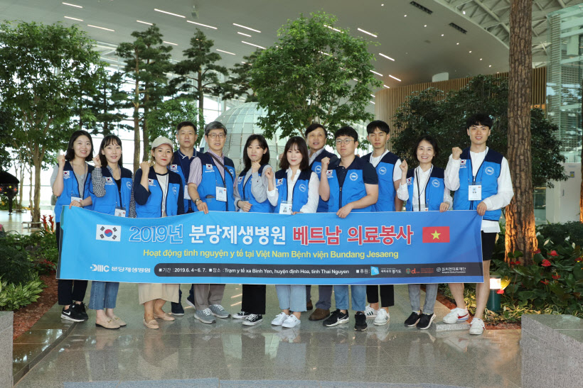 - From June 4-7 in 2019, a medical team from Bundang Jesaeng Hospital, together with volunteers from Gyeonggi-do, Dajin International Volunteers Association, and Seegene Medical Foundation, performed medical services for low income residents at a public health center in Thai Nguyen, Vietnam. The medical volunteer team from Bundang Jesaeng Hospital was made up of ten specialists from various departments consisting of specialists in family medicine, pediatrics, neurosurgery, dental clinic, rehabilitation, nursing, and social services. Additionally, there were two medical examination personnel from Seegene Medical Foundation and ten other volunteers from . - The medical volunteer team provided medical checkup services, ultrasonography examinations, physical therapy, blood tests, and prescribed medicine to 681 residents who had been selected as needy individuals by the local health center bureau. Also, on June 4, they held a seminar at the Medical and Pharmacy College of Thai Nguyen on the themes such as “Diagnosis and Treatment of Cervical Spine Damage” which was presented by Oh Seong-han, the manager of neurosurgery department and “Diagnosis and Treatment of Pediatric Cardiac Disorder,” presented by Choi Jong-wun, a pediatrician and the head of a medical volunteer team.