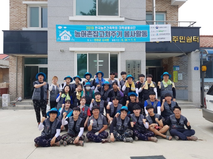 - From June 24th to July 5th, Professor Ryu Dong-Wu and 34 students of Daejin University's Human Architecture Engineering Department were engaged in a volunteer project that performed repairs for vulnerable groups in rural areas. - Ever since 2014, each summer vacation has seen the professors and students of Daejin University's Human Architecture Engineering Department carrying out volunteer activities for vulnerable rural groups. This year, they carried out volunteer activities aimed at environmental improvement such as building cement block walls, flooring, exterior wall finishes, and window frames for five households located around Daegwang 1-ri, Shinseo-myeon, Yeoncheon-gun, Gyeonggi-do. - Park Hyeon-Ung, a student who participated in the volunteer activities, said, "Helping the local residents through volunteer activities like repairing old houses while on vacation has been a really meaningful experience." He added, "I would like to provide them with a better residential environment." - Professor Ryu Dong-Wu remakrded, "I am delighted that students who have opted to continue studying over vacation have lent us a hand by participating in these repair services. I would like to deliver my thanks to the students who were so generous with their time."