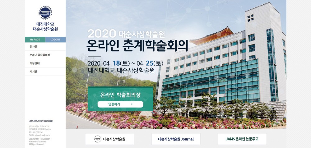 - Daesoon Academy of Sciences (DAOS) held its 2020 spring conference from April 18th to 25th.