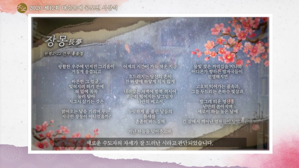 - The 12th Daesoon Literature Contest Award Ceremony Was Held Via Video