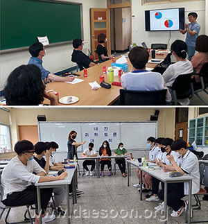 - Daejin High School has been conducting many remote classes and meetings due to COVID-19. Daejin High School has provided full support for campus facilities by opening an additional video studio to provide excellent remote classes to students, remodeling existing classrooms to create a Sangsaeng Cafe, and creating a 'Remote Class Leader Training' program for remote classes. Considerable brainstorming occurred during curriculum organization meetings wherein the improvement of teaching methods was freely discussed.