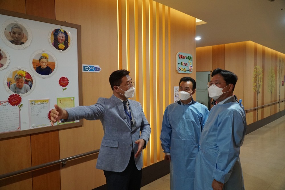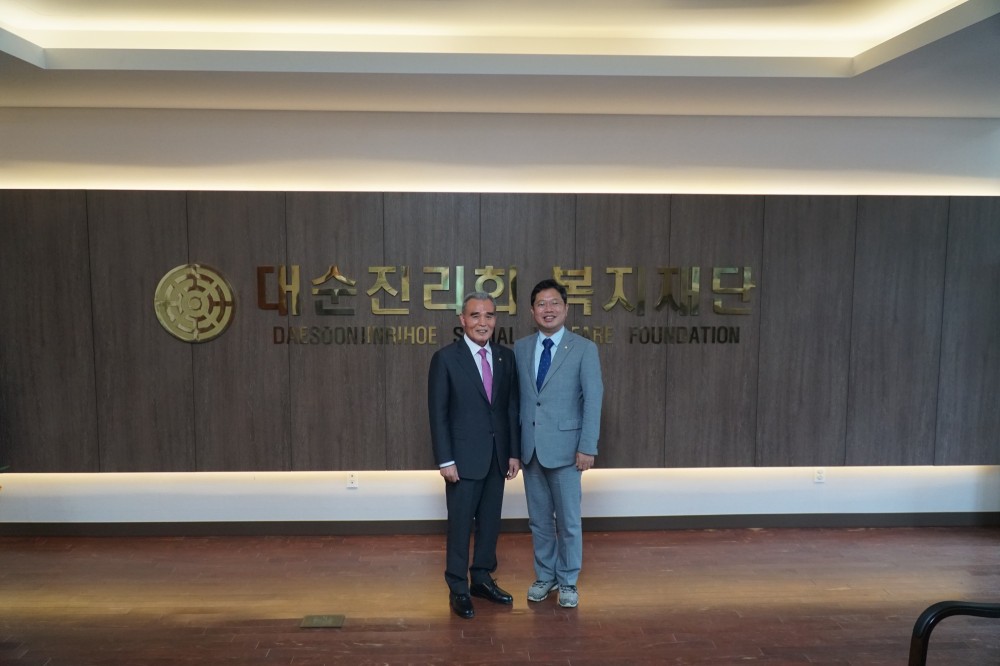 - On June 10th, a member of the National Assembly, Kim Seungwon, of the Democratic Party of Korea, visited Daesoon Jinrihoe Welfare Foundation. Representative Kim explained that his reason for visiting Daesoon Jinrihoe Welfare Foundation was his long-standing interest in social welfare. After a meeting with Daesoon Jinrihoe Welfare Foundation Chairman, Yun Eun-do, Representative Kim toured the Welfare Foundation and remarked, “It is both amazing and wonderful that these excellent services and state-of-the-art facilities are operated in each room of this unit, which is made possible through donations from Daesoon Jinrihoe's Dao cohorts.”