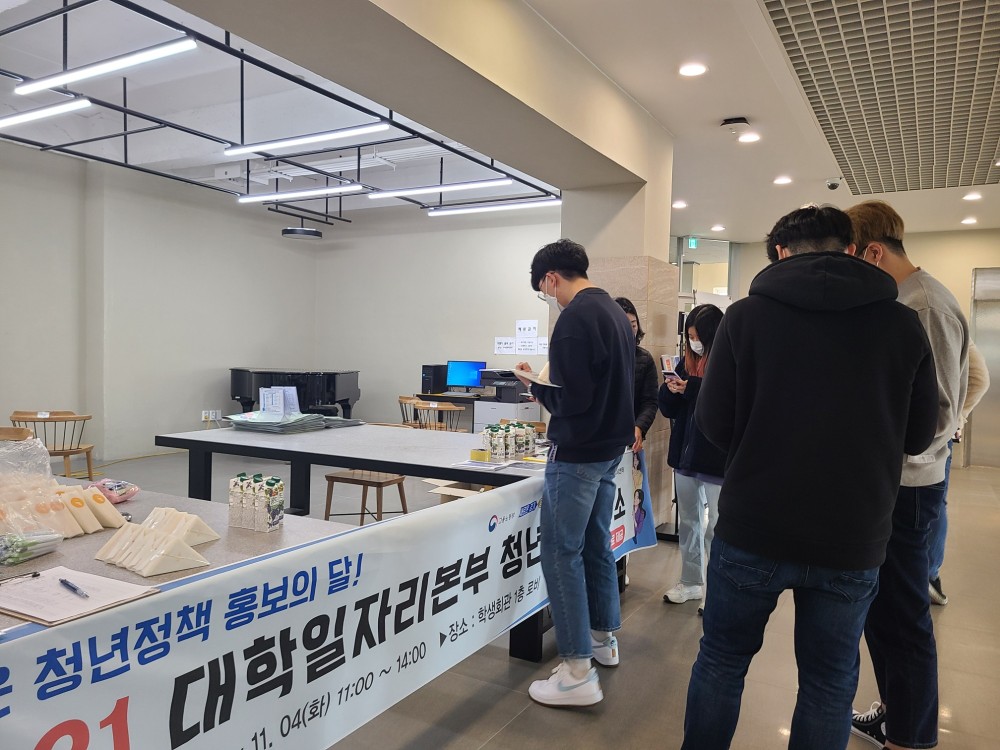 Daejin University’s Job Center operated a ‘Visiting Youth Policy Counseling Center’ from November 3rd to 4th in the lobby of the student center on campus to actively promote youth employment policies to current students and local youths. Daejin University’s Job Center operated a ‘Visiting Youth Policy Counseling Center’ from November 3rd to 4th in the lobby of the student center on campus to actively promote youth employment policies to current students and local youths.- At this event, policy-related programs operated by the University Job Center of Daejin University were intensively promoted alongside youth employment policies operated by the Ministry of Employment and Labor such as the National Employment Support System, the National Tomorrow Learning Card, the Youth Tomorrow Chaeum Deduction, the main policies of the Youth Digital Job Project. In addition, the Visiting Youth Policy Counseling Center received a great response by providing support to current students to help them receive practical help in their job search activities through personalized counseling.