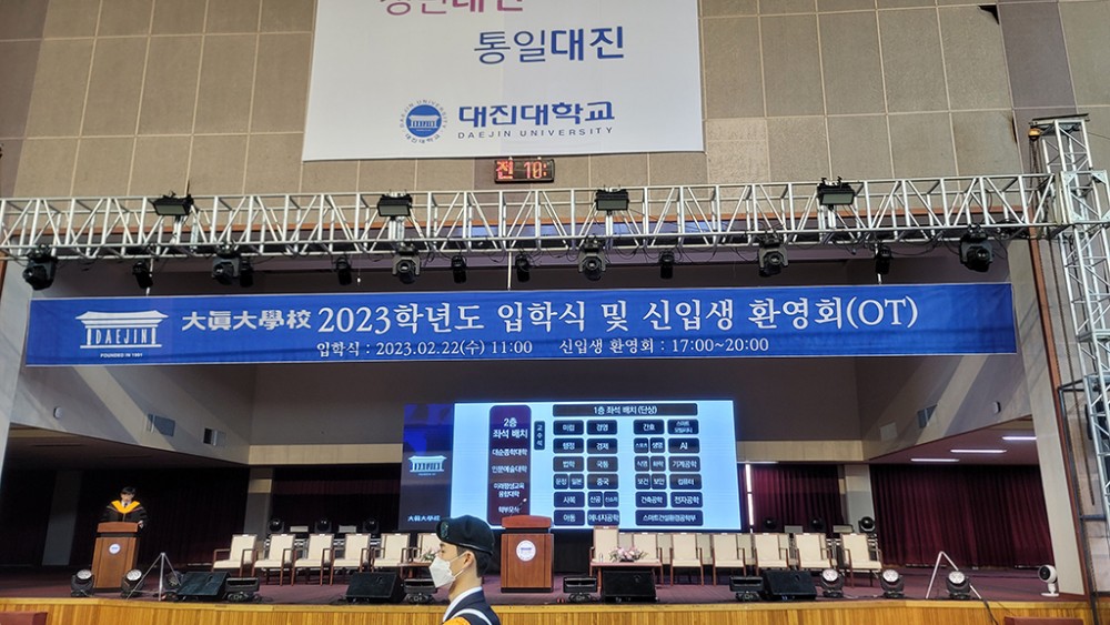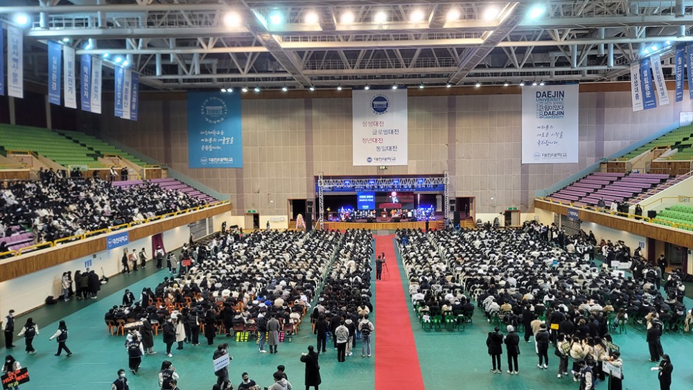 • Daejin University held an entrance ceremony for incoming freshmen at the school’s main gymnasium on February 22nd to mark the start of the 2023 academic year.