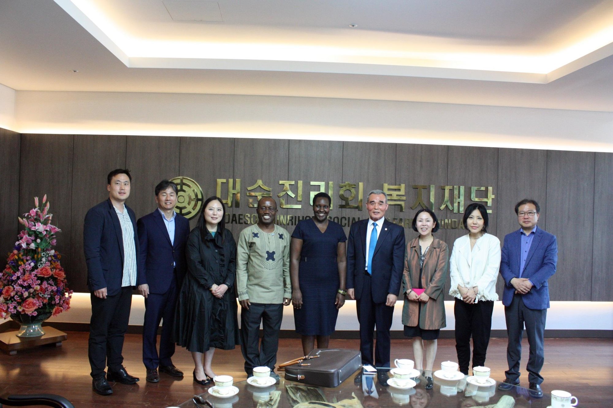 .jpg) On April 21, 2018, the governor of Sheema in Uganda, Kabigumira David, a member of Ugandan parliament, Atuhaire Jacket, and 8 other people including an executive of Korean National Health Insurance Corporation, and representatives and staff members of related businesses visited Yeoju Headquarters Temple Complex and facilities affiliated with Daesoon Jinrihoe Welfare Foundation. When the government of Uganda decided to build an advanced welfare facility in Sheema as a solution issues related to the nuclear family structure, it received a recommendation from Korean National Health Insurance Corporation to visit Daesoon Jinrihoe Welfare Foundation for benchmarking purposes. On April 21, 2018, the governor of Sheema in Uganda, Kabigumira David, a member of Ugandan parliament, Atuhaire Jacket, and 8 other people including an executive of Korean National Health Insurance Corporation, and representatives and staff members of related businesses visited Yeoju Headquarters Temple Complex and facilities affiliated with Daesoon Jinrihoe Welfare Foundation. When the government of Uganda decided to build an advanced welfare facility in Sheema as a solution issues related to the nuclear family structure, it received a recommendation from Korean National Health Insurance Corporation to visit Daesoon Jinrihoe Welfare Foundation for benchmarking purposes.- In the meeting with Daesoon Jinrihoe’s president of the headquarters, Director Yoon Eun-do, after the tour around the foundation, Governor Kabigumira David said “I want to take Daesoon Jinrihoe’s welfare facilities as a model for the pilot project of the Ugandan government,” and then conveyed his desire to invite representatives from Daesoon Jinrihoe to Uganda in order to discuss details regarding future cooperative work. Then, Director Yoon responded by saying “Building a social welfare facility is important, but what is more important is the operation of the facilities,” and he added “When preparations are fully ready in Uganda, we will send a professional developer and support the project by providing general training in the operations of welfare facilities.”