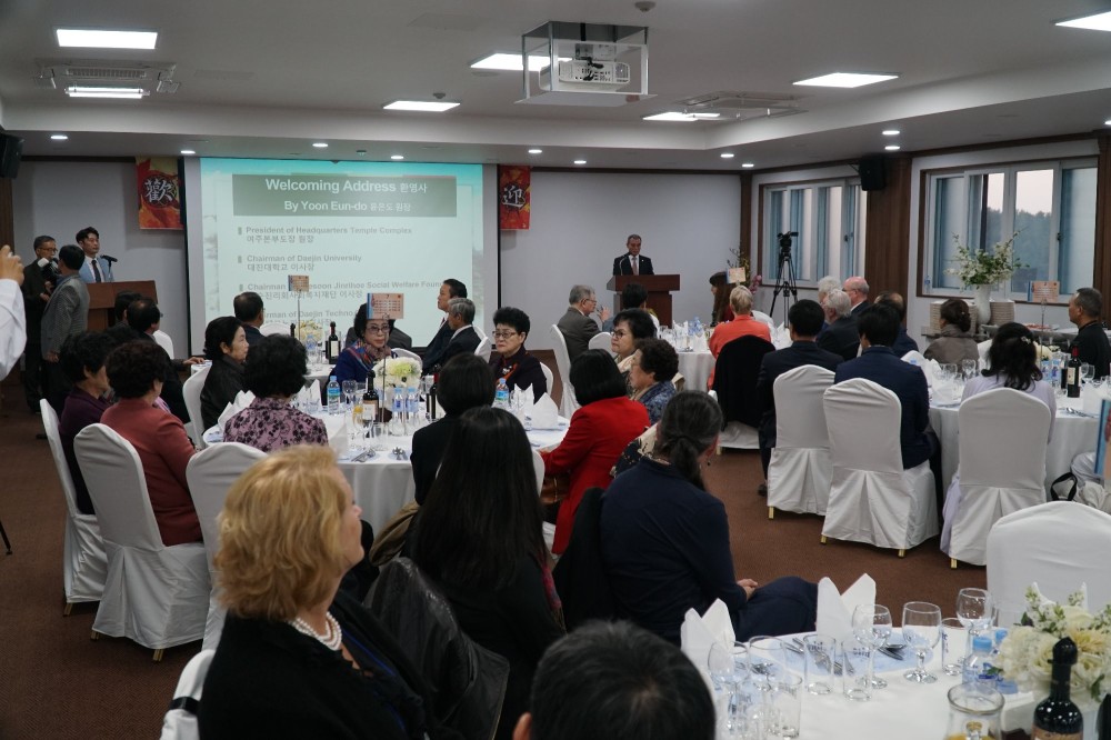- In October 20-21, the second World Sangsaeng Forum was held at the central library of Daejin University. It was hosted by Daesoon Academy of Sciences of Daejin University and supported by Daesoon Jinrihoe Yeoju Headquarters Temple Complex. On the theme “Towards an Earthly Paradise: The Future of Humanity in Religions and Daesoon Thought”, about 200 scholars and professionals of religions from 15 countries participated and spoke about the topic. - On these days, there were various and in-depth discussions on earthly paradise including a presentation on Haewon Sangsaeng and Earthly Paradise of Daesoon thought, various views of earthly paradise in different religions, and comparison between Daesoon thought and other religions. One of participants said “It is amazing to see how many different religions and religious thoughts can interact, mutually understand, and discuss academically under the common theme.” Also, another participants said “I would like to thank and deliver my respect to Daesoon Jinrihoe and Daesoon Academy of Sciences for arranging such wonderful international conference.” - After the conference, all participants visited Daesoon Jinrihoe Yeoju Headquarters Temple Complex , paid respect at Yeongdae, and enjoyed banquet prepared by the temple. In his welcoming address, President Yoon Eun-do said “I expect this World Sangsaeng Forum will go beyond a field of academic exploration and develop into that of communication and friendship for many scholars from overseas.”